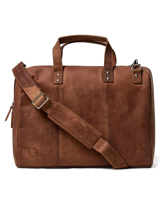 Rummelig taske fra Salt i læder med plads til computer og med aftagelig skulderstrop.