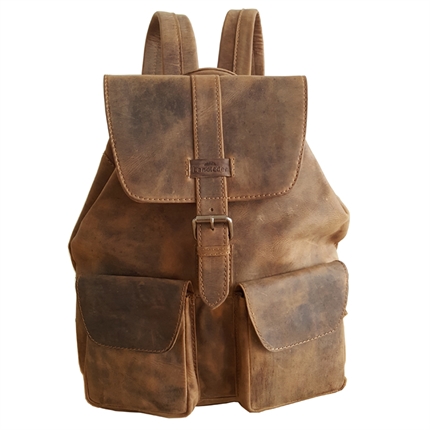 Rygsæk – Old School. Vintage lædertaske lavet af ubehandlet bøffellæder. Der er fremstillet på gammeldags manr – Som de gamle western tasker. Læderskindene tromles flere gange efter garvning. Sålæderet mister fedt og luftfugtighed og dermed får sit