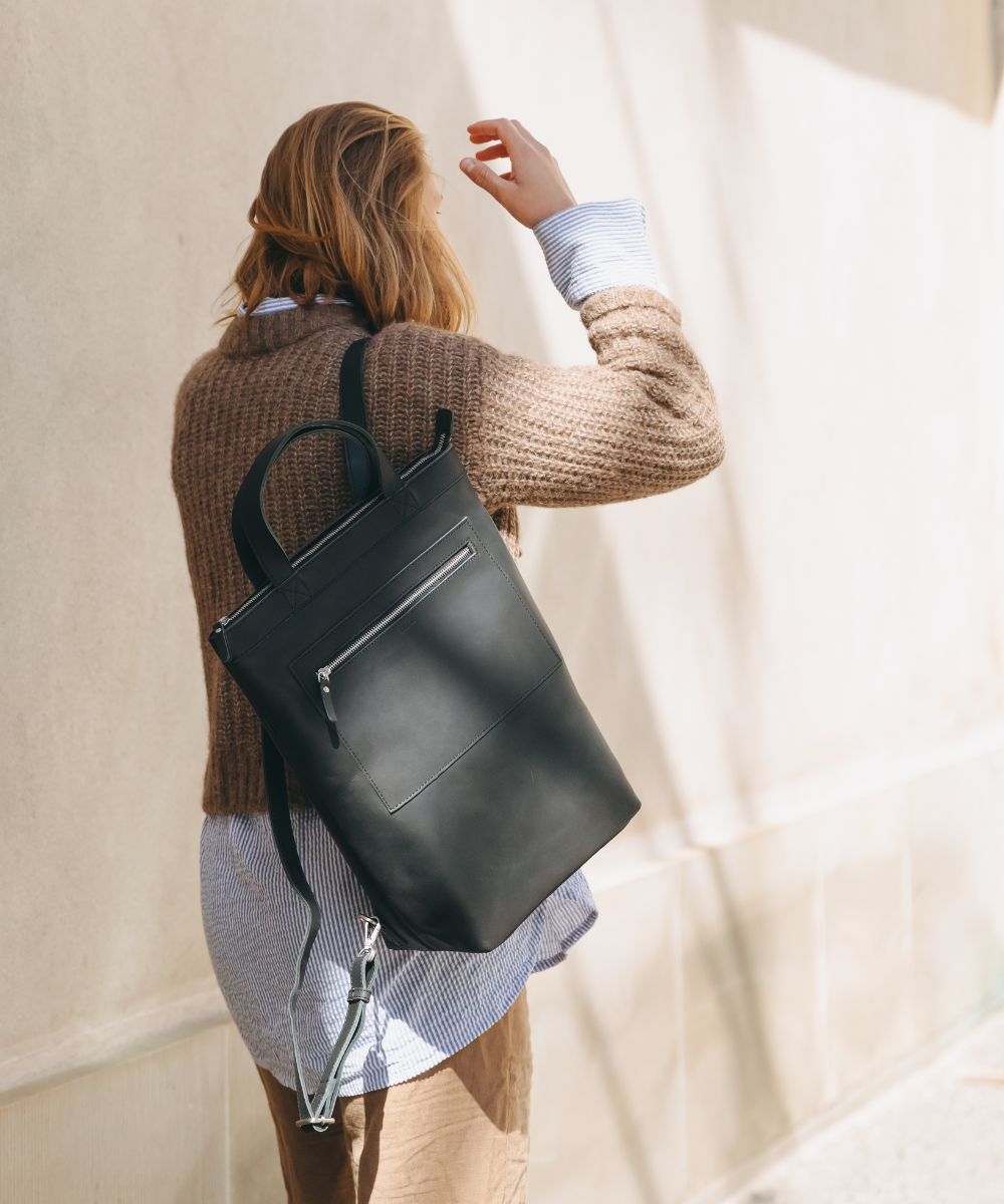 Produkt id. Shopper-taske-rygsæk-sort-læder-walawe